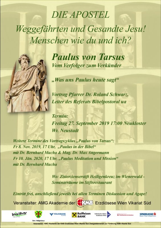 Die Apostel – Paulus 27. September 2019 | 17:00 Uhr Neukloster Neuklostergasse 1 2700 Wiener Neustadt