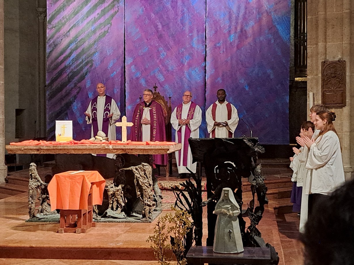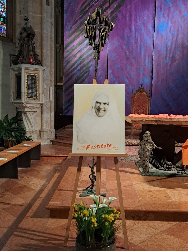 Für manche neu waren am Beginn der Feier das von Msgr. Wilhelm Müller† verfasste Restituta-Lied, in dem wesentliche Aspekte aus dem Leben der Seligen zusammengefasst sind – und auch das von Schülerinnen und Schülern der Modeschule Mödling sehr persönlich getextete und komponierte Lied „Restituta Résistance“. Nach dem abwechselnd gebeteten Psalm 95 stellte die zentrale Lesung aus dem ersten Korintherbrief (1 Kor 12,12–27) die Einheit der vielen Glieder in Christus in den Mittelpunkt des Gottesdienstes. In der anschließenden Meditation wurde veranschaulicht, dass aus unterschiedlichen Steinen ein gemeinsames Fundament werden kann. Dr. Gruber griff in seiner Predigt Gedanken aus der Lesung und der Meditation auf, betonte die Vielfalt in der Einigkeit und wünschte für den weiteren Weg, auf dem wohl auch Unterschiedlichkeiten und Gegensätze bewusst werden, den Mut zum Gemeinsamen und den Segen Gottes.