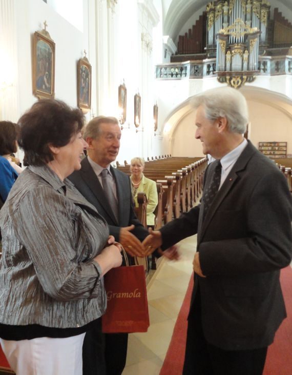 KMB-Diözesanobmann Helmut Wieser gratulierte dem persönlich befreundeten Jubelpaar und dem aktiven KMB-Mitglied herzlichst und überreichte einen musikalischen Blumenstrauß mit CD-Aufnahmen ausgewählter Chöre.
